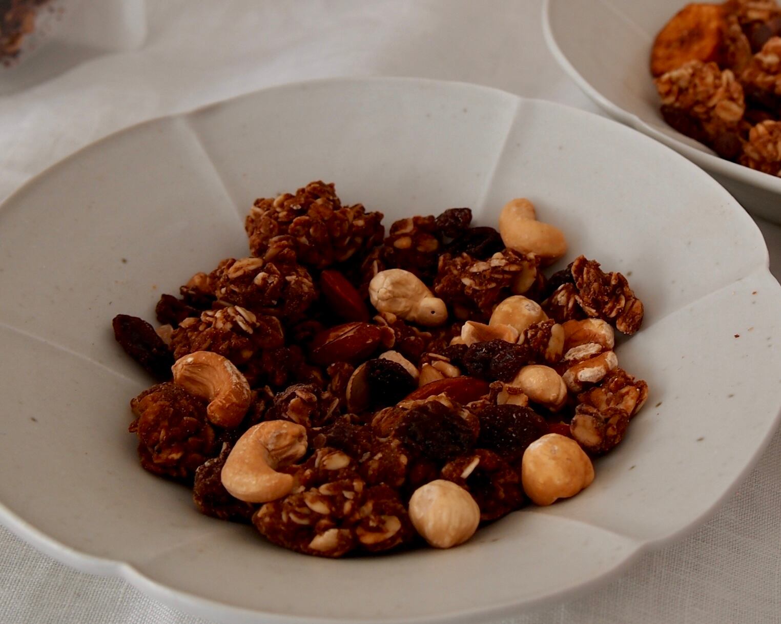 原材料:オーツ麦(オーストラリア)、小麦全粒粉、有機メープルシロップ、レーズン、ココナッツオイル、アーモンド、キャラメルパウダー(濃縮乳・水飴・脱脂粉乳)、ラム、カシューナッツ、ヘーゼルナッツ、有機カカオ豆、バニラビーンズ、ゲランド塩