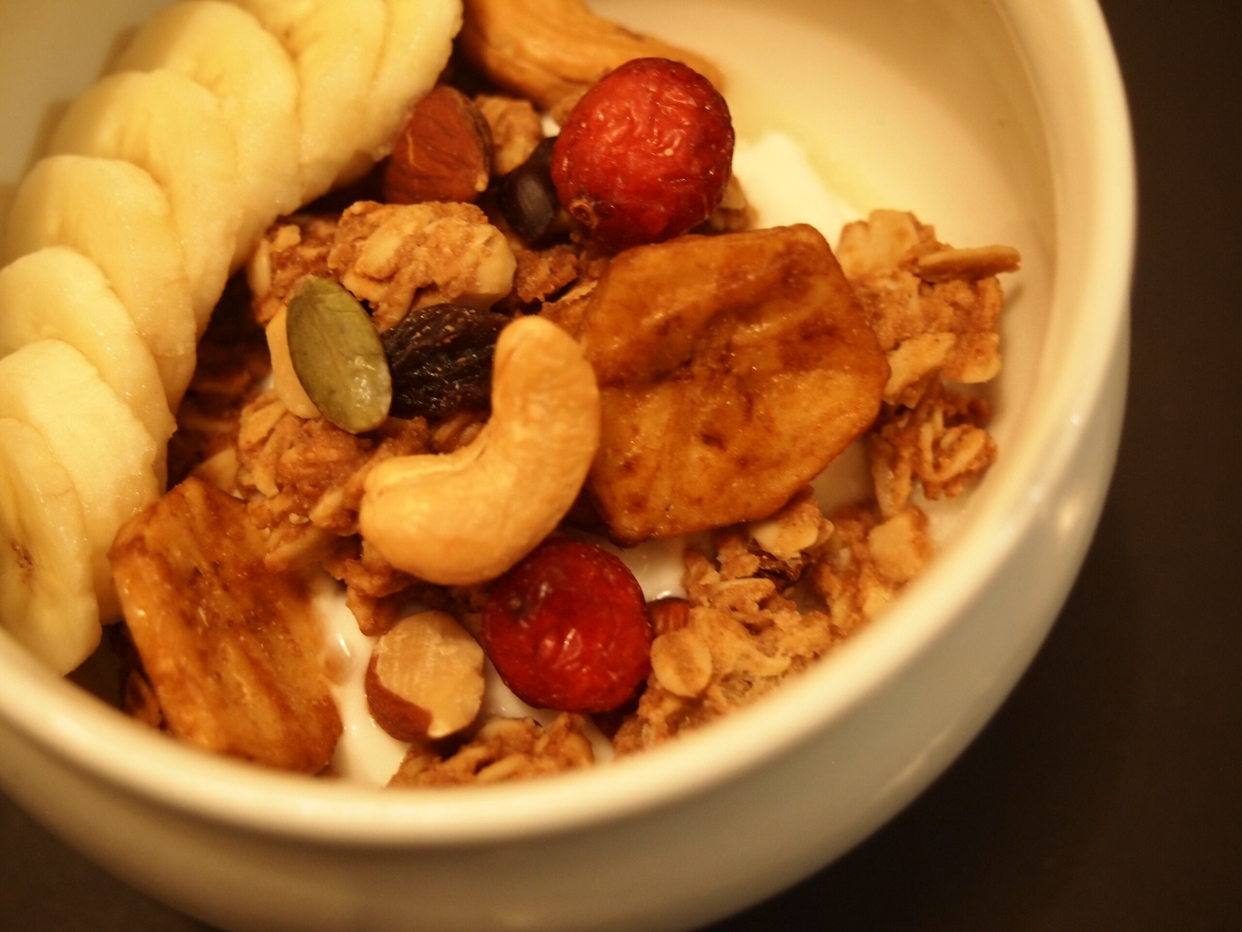 グラノーラ自体は、有機メープルシロップとフルーツの自然の甘みを大切にしているため、